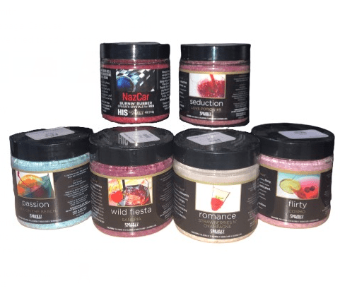 All-American, Apple Sandlewood, Coconut Vanilla Exotic, Cosmo Flirty, Eucalyptus Mint, French Vanilla, Grapefruit Orange, Hawaii Aloha Paradise, Honey Mango, Love Potion Seduction, Mimosa Celebrate, Nascar Burnin' Rubber, NYC Big Apple, Ocean Breeze Tranquility, Paris City of Love, Pina Colada, Pomegrante, Redneck Rough & Rugged, Sex on The Beach Passion, Strawberries N' Champagne, White Musk Vanilla Jasmine, Wild Fiesta Sangria